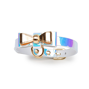 - チャーミングな魅力に溢れる甘すぎず、さりげなく色気を漂わせるメタルリボンモチーフのレザー拘束首輪です。